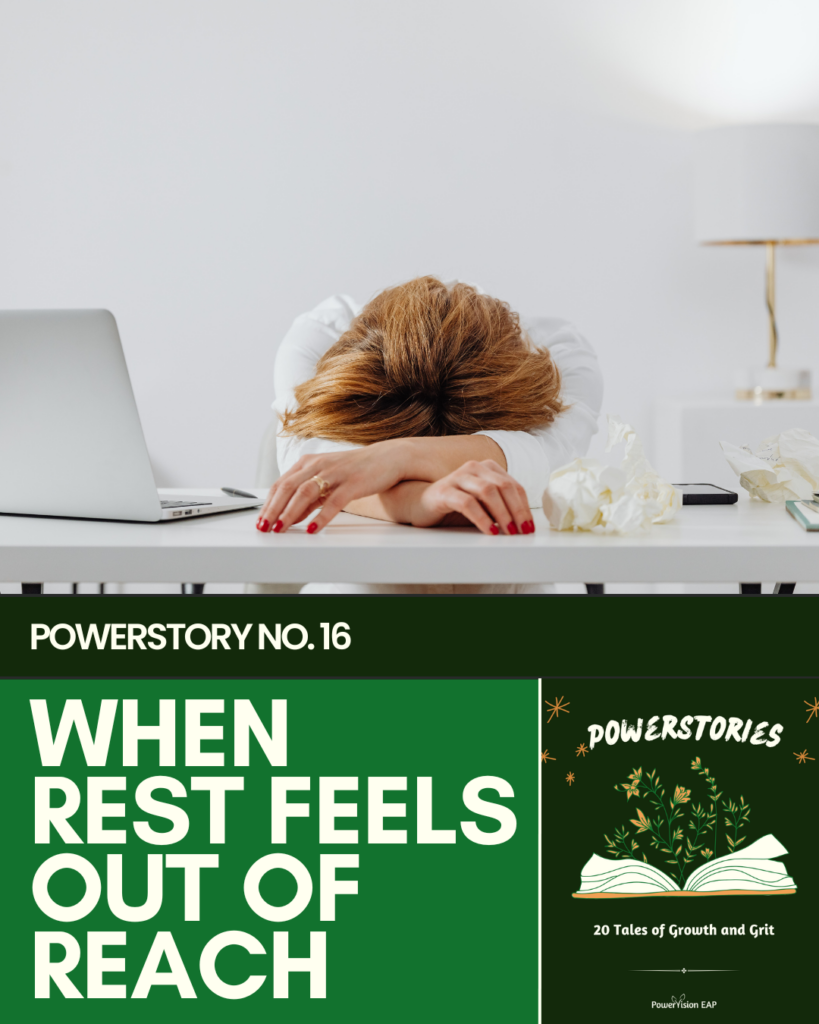 She began journaling again, taking mindful breaks during work, and learning to rest without guilt. She talked with her manager, who helped her adjust her schedule and encouraged her to use her EAP sessions more regularly. Slowly, she began to find a rhythm that made space for both her responsibilities and her well-being.